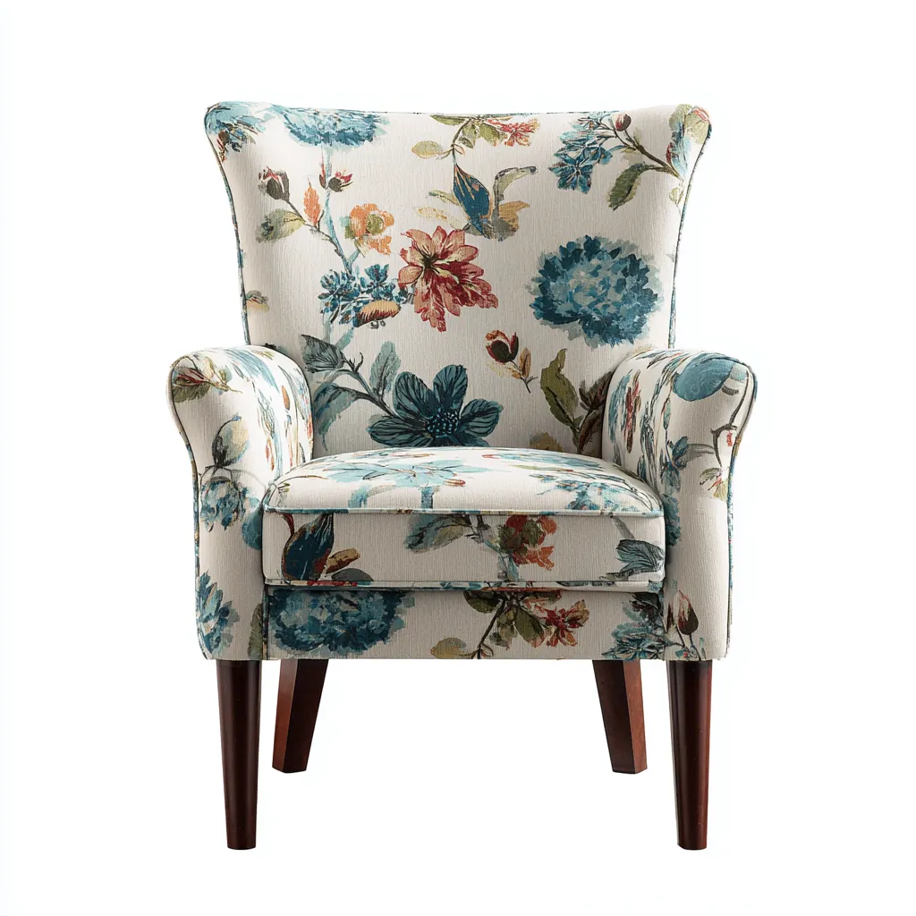 Rivestimento in tessuto multicolore con motivo floreale. Struttura portante in legno progettata per garantire stabilita e resistenza nel tempo. Imbottitura uniforme e lavorazione accurata per un utilizzo quotidiano.